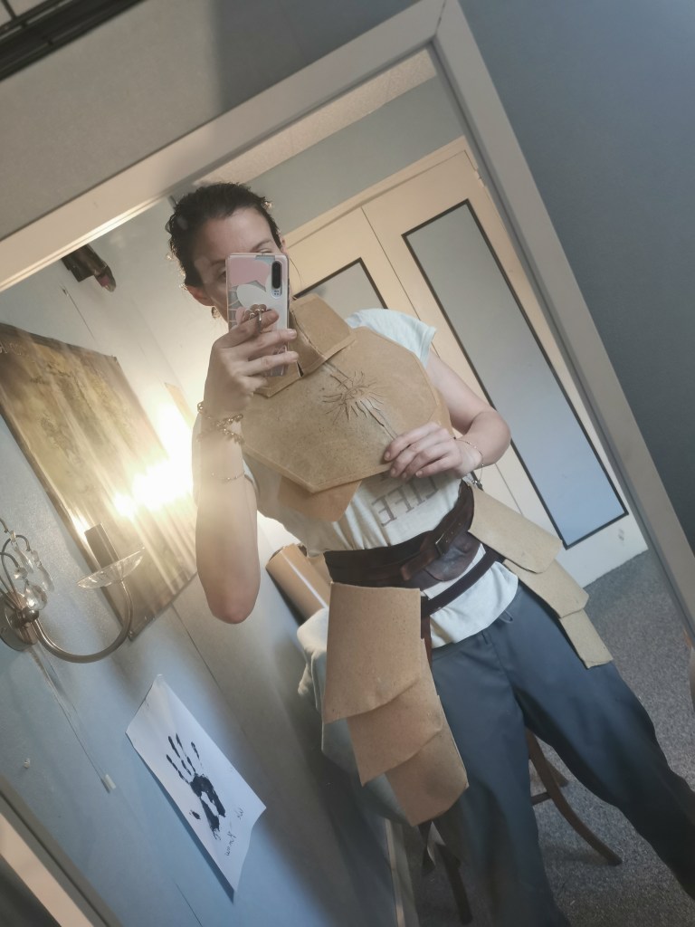 Le costume de l’inquisitrice Lavellan progresse ! J’en suis ravie. Quel bonheur de rentrer à l’atelier chaque soir et de crafter avec les musiques de RPG en fond sonore ! Je n’ai pas les mots pour décrire exactement ce qu’il se passe dans ces moments là, mais le temps semble complètement suspendu.